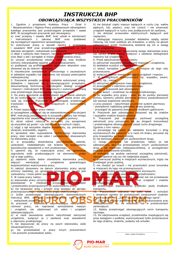 Instrukcja BHP obowiązująca wszystkich pracowników