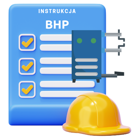 Oferowana instrukcja to dokument w formacie PDF do samodzielnego wydruku, zalaminowania oraz umieszczenia w wyznaczonym w zakładzie pracy miejscu.